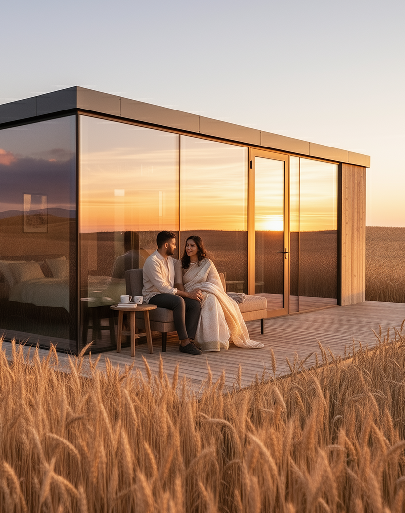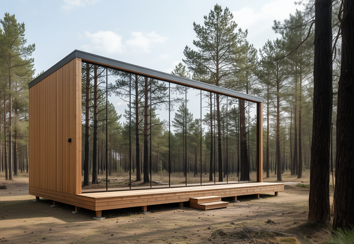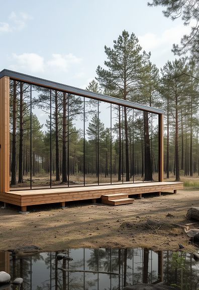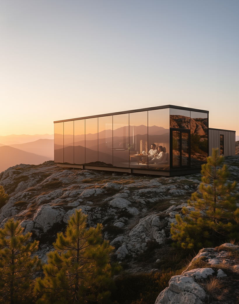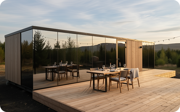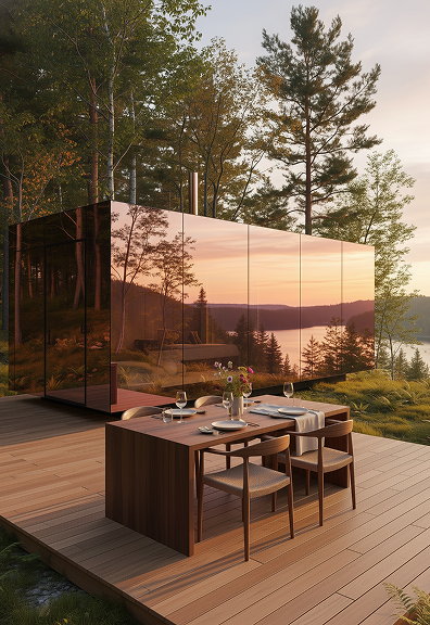 The Mystic Cabin is a mirror-glass eco-luxury cabin designed for resorts and scenic retreats, offering a striking exterior with a calm, premium interior experience.